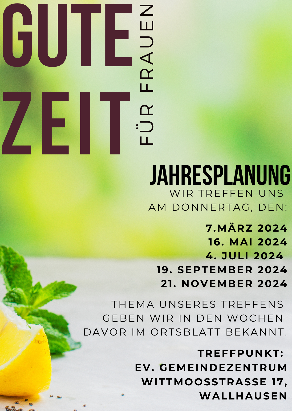 Wir sind eine Gruppe von Frauen, die sich alle vier bis sechs Wochen trifft um Neues auszuprobieren, im Gespräch zu sein. Mal vertiefen wir Themen rund um den Glauben, mal treffen wir uns zum Krimidinner - ganz so, wie es gerade passt und Freude bereitet.
